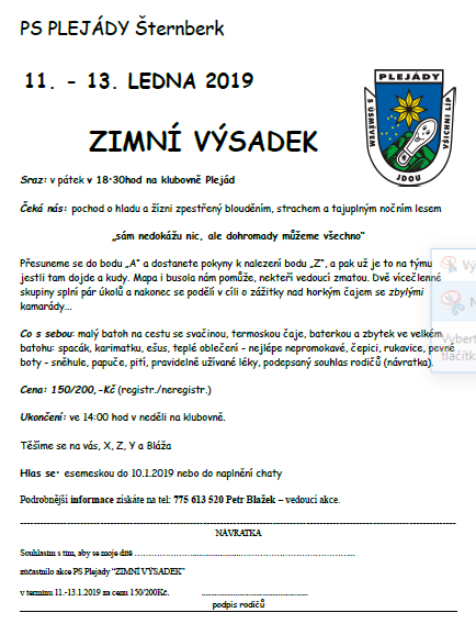 ZIMNÍ VÝSADEK 11. - 13. 1.